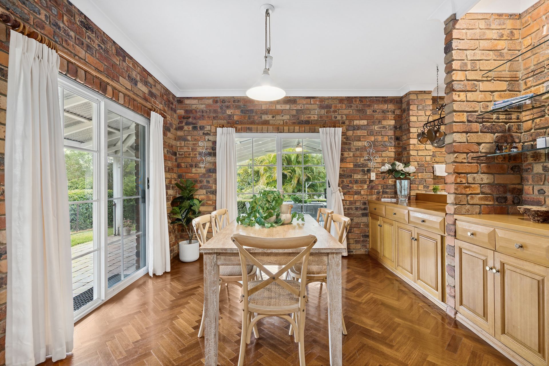 • Spacious lounge, dining, and living areas with parquetry hardwood floors.
