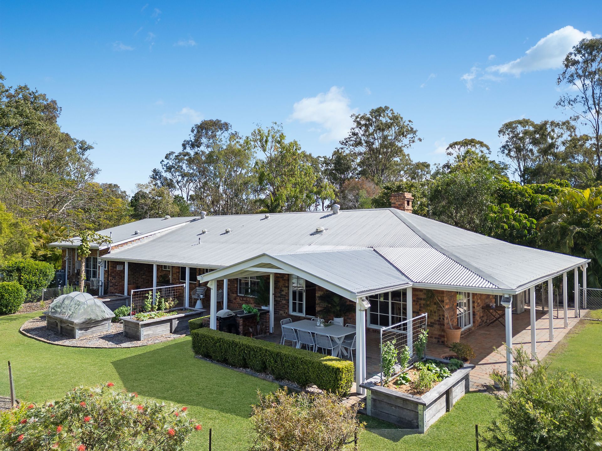 • Wrap-around verandas, patio with BBQ provision, veggie beds, and fruit trees.
