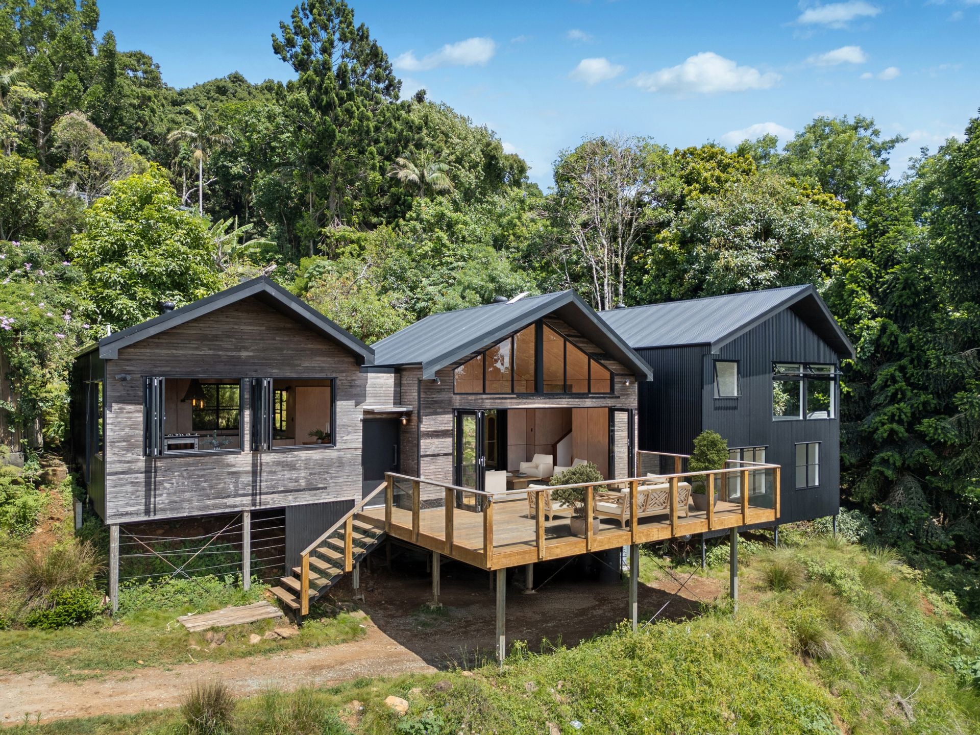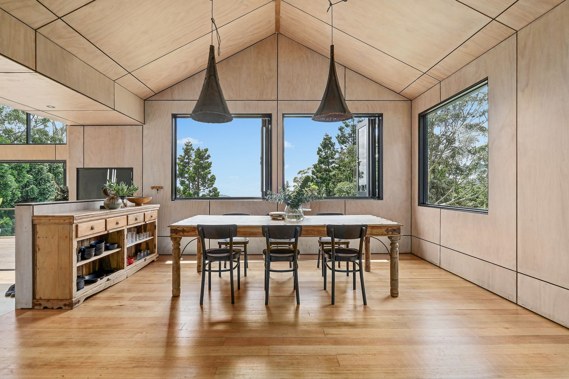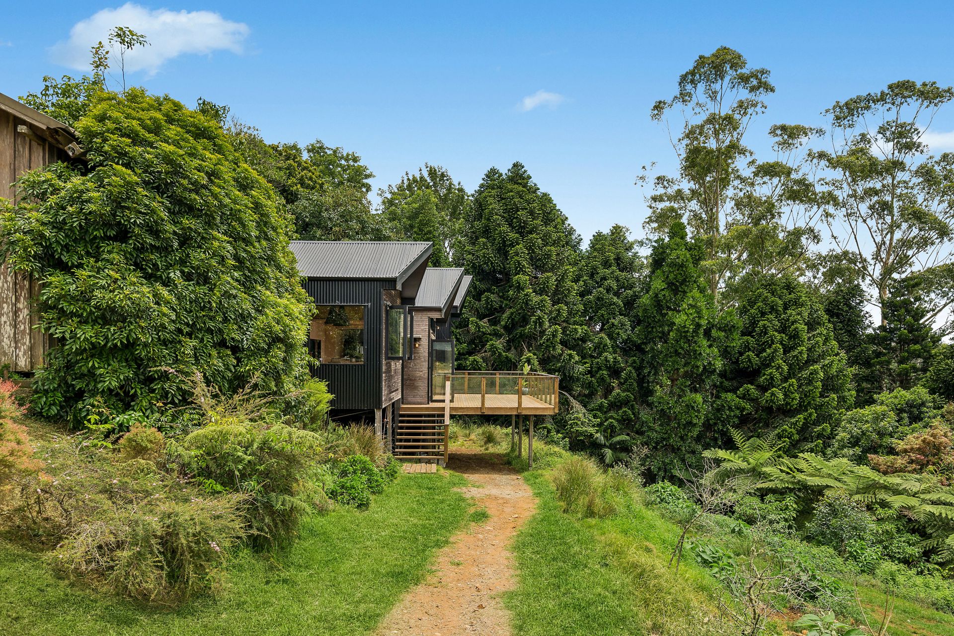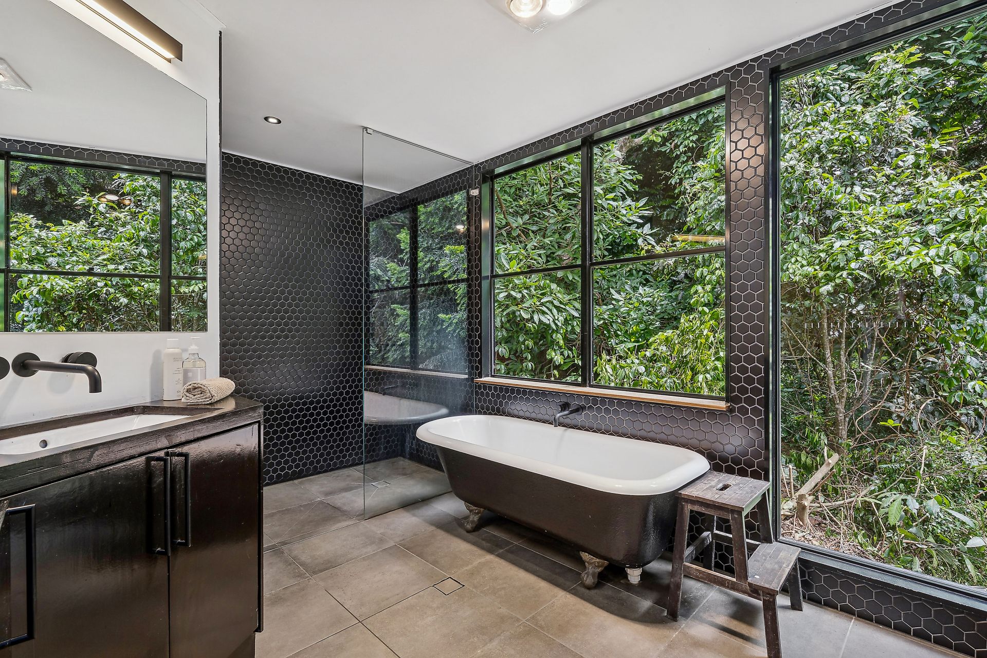 Privately positioned within a serene rainforest setting, the home has been thoughtfully designed to embrace its natural surrounds while offering seamless indoor–outdoor living. A dramatic open-plan living pavilion forms the heart of the home, where soaring cathedral ceilings, warm timber floors, and walls of glass create an immediate sense of scale, light, and connection to the landscape.