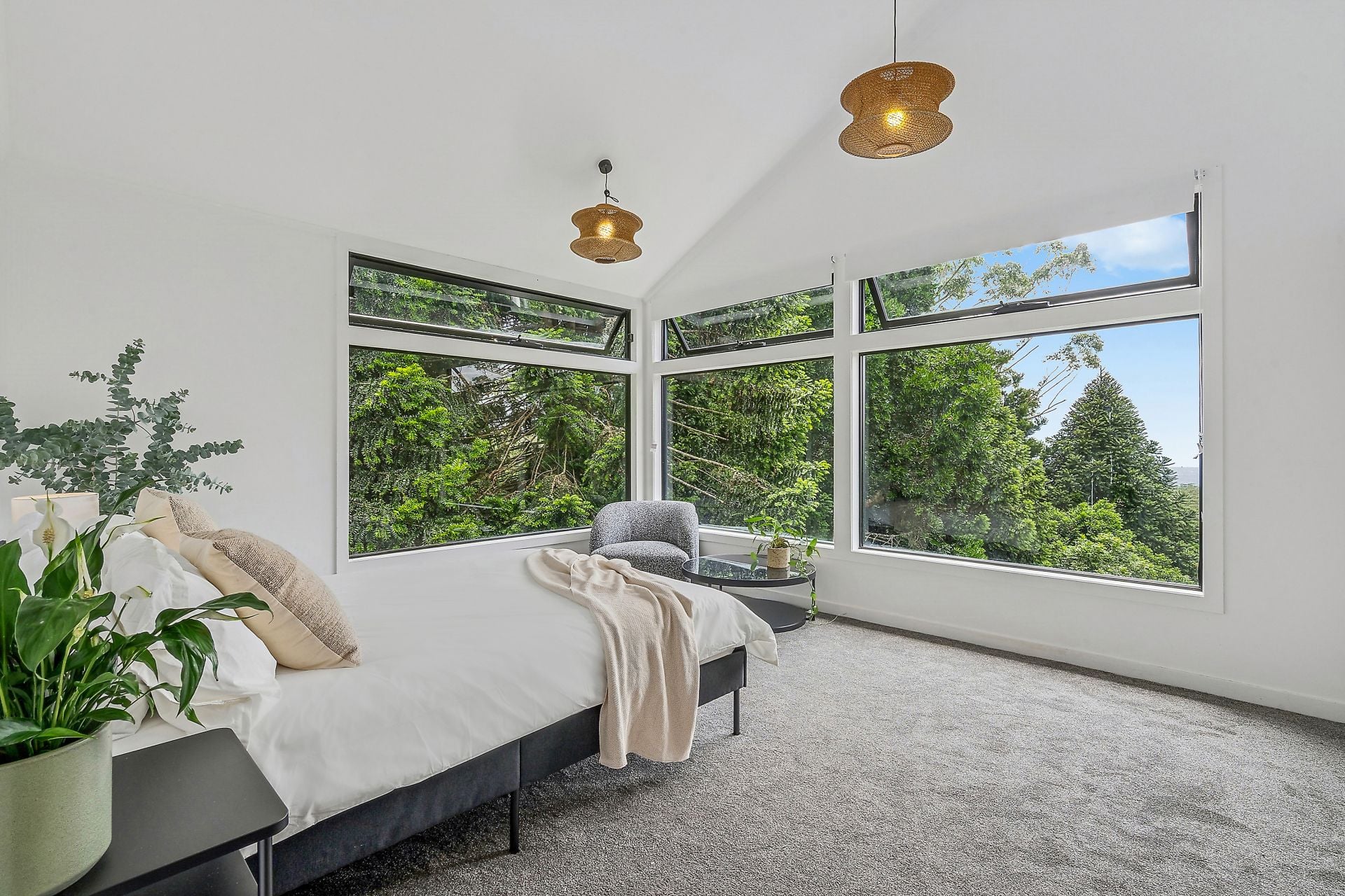 Designed for low-maintenance mountain living, the home sits elevated yet secluded, immersed in birdsong, rainforest treetops, and ever-changing light. Despite its peaceful mountain setting, the property remains remarkably accessible – approximately 25 minutes to Samford Village and a scenic one-hour commute to Brisbane CBD.