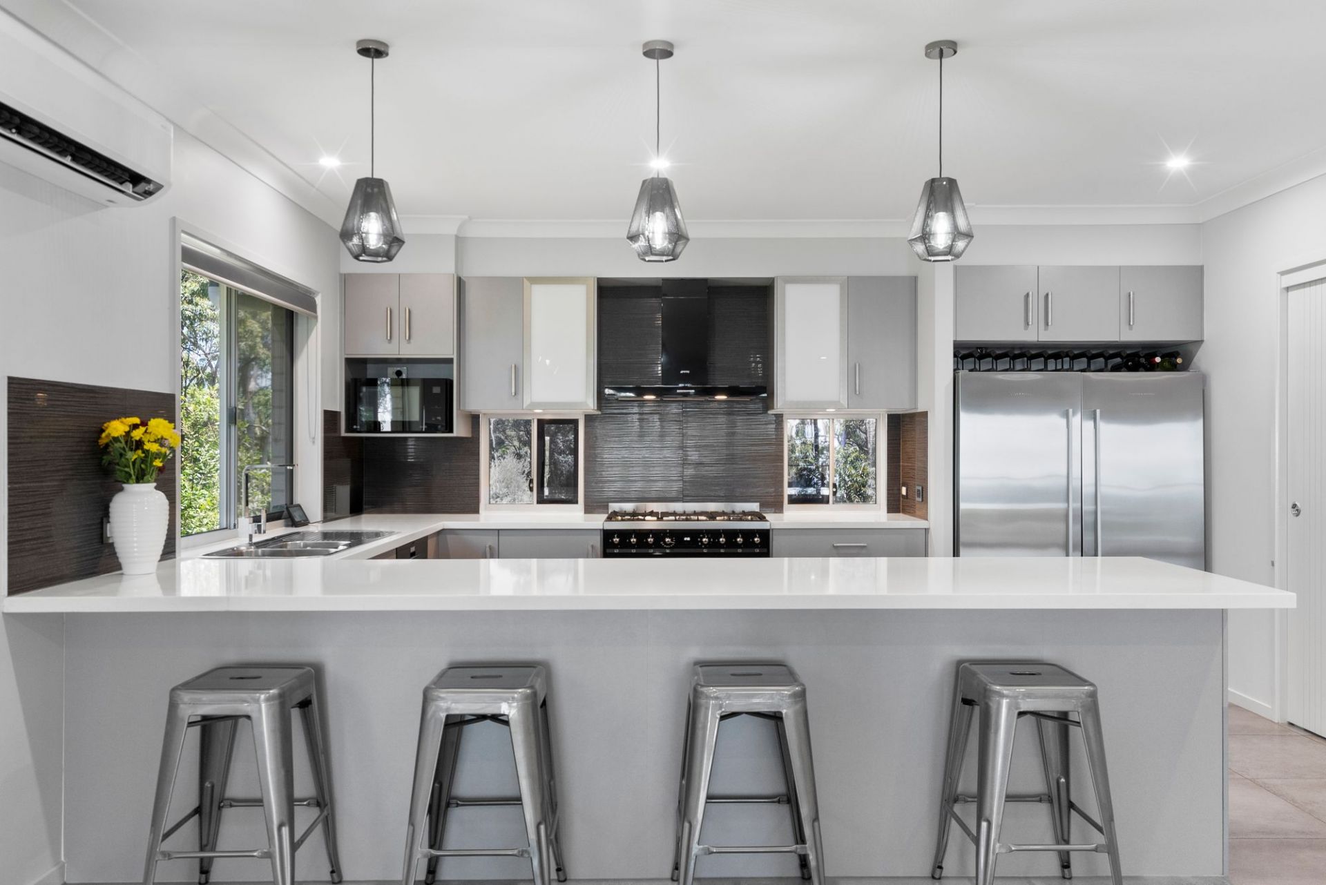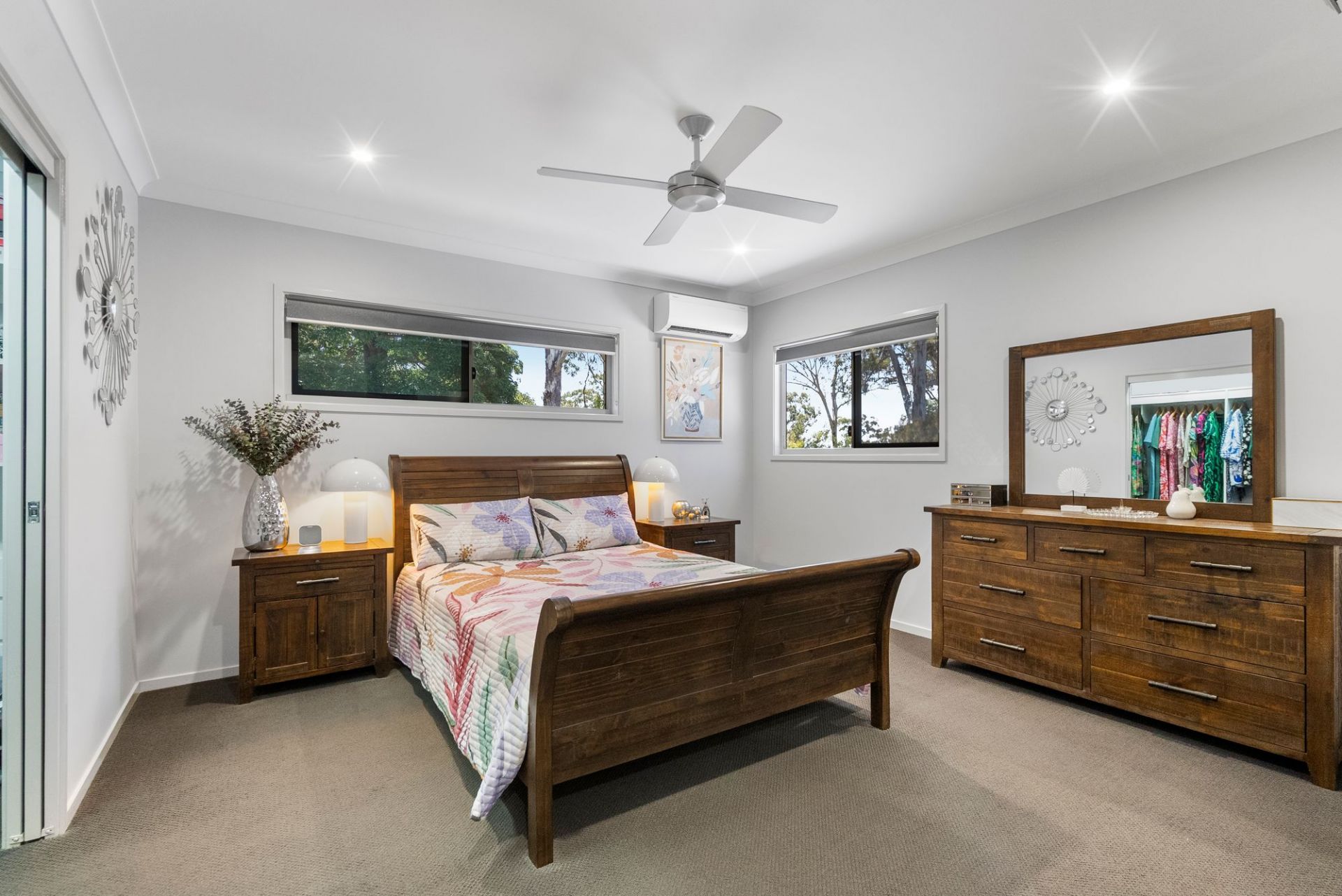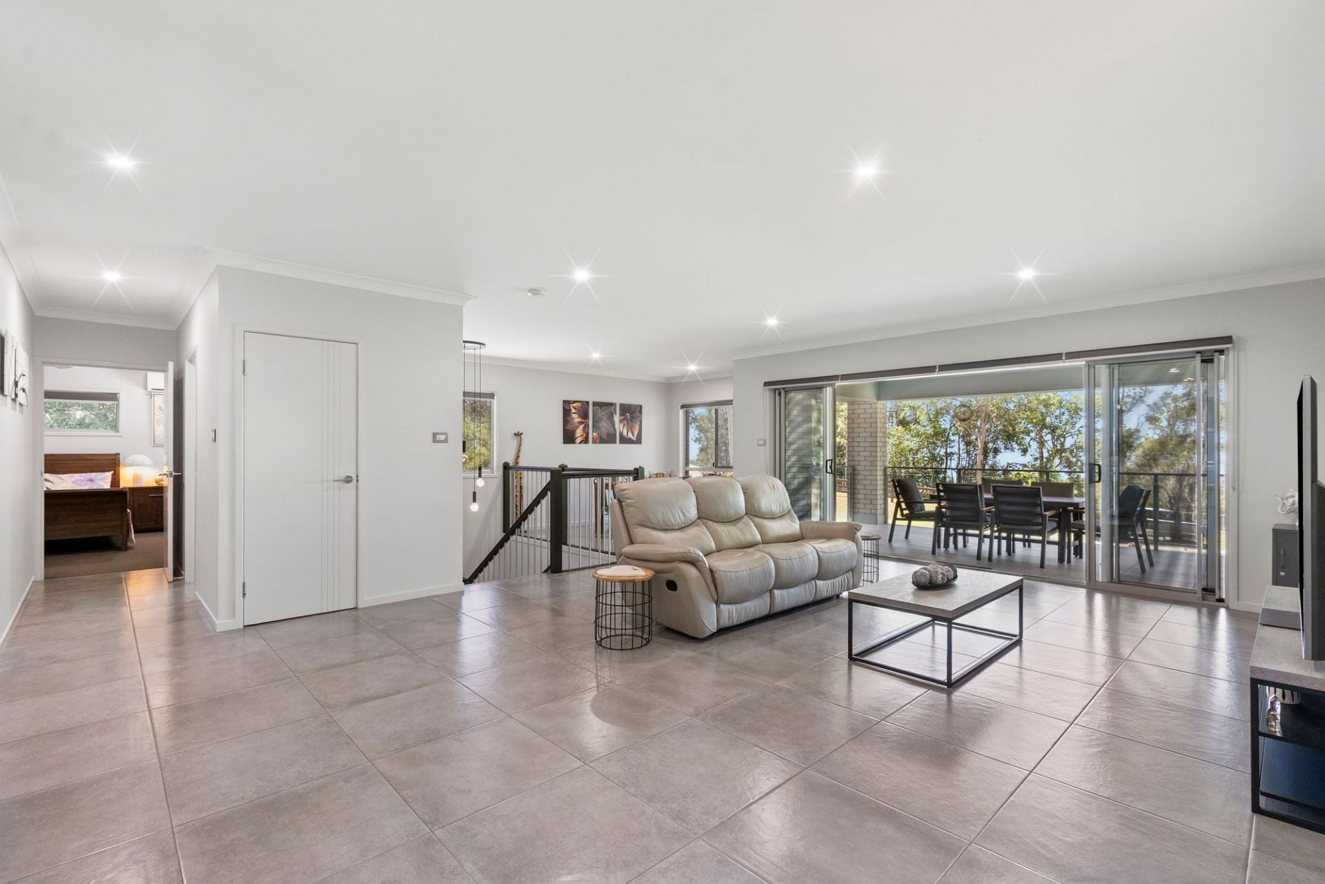 Architecturally designed and built by Ownit Homes in 2015, this highset brick residence delivers refined acreage living on 4.17 acres, with breathtaking coastal and hinterland views to Moreton Bay, Bribie Island and the Glass House Mountains. Combining light-filled open-plan living, a stylish kitchen with Caesarstone benchtops and SMEG appliances, a king-sized master suite retreat, and versatile downstairs family spaces, it’s the perfect balance of luxury, functionality and relaxed rural lifestyle.