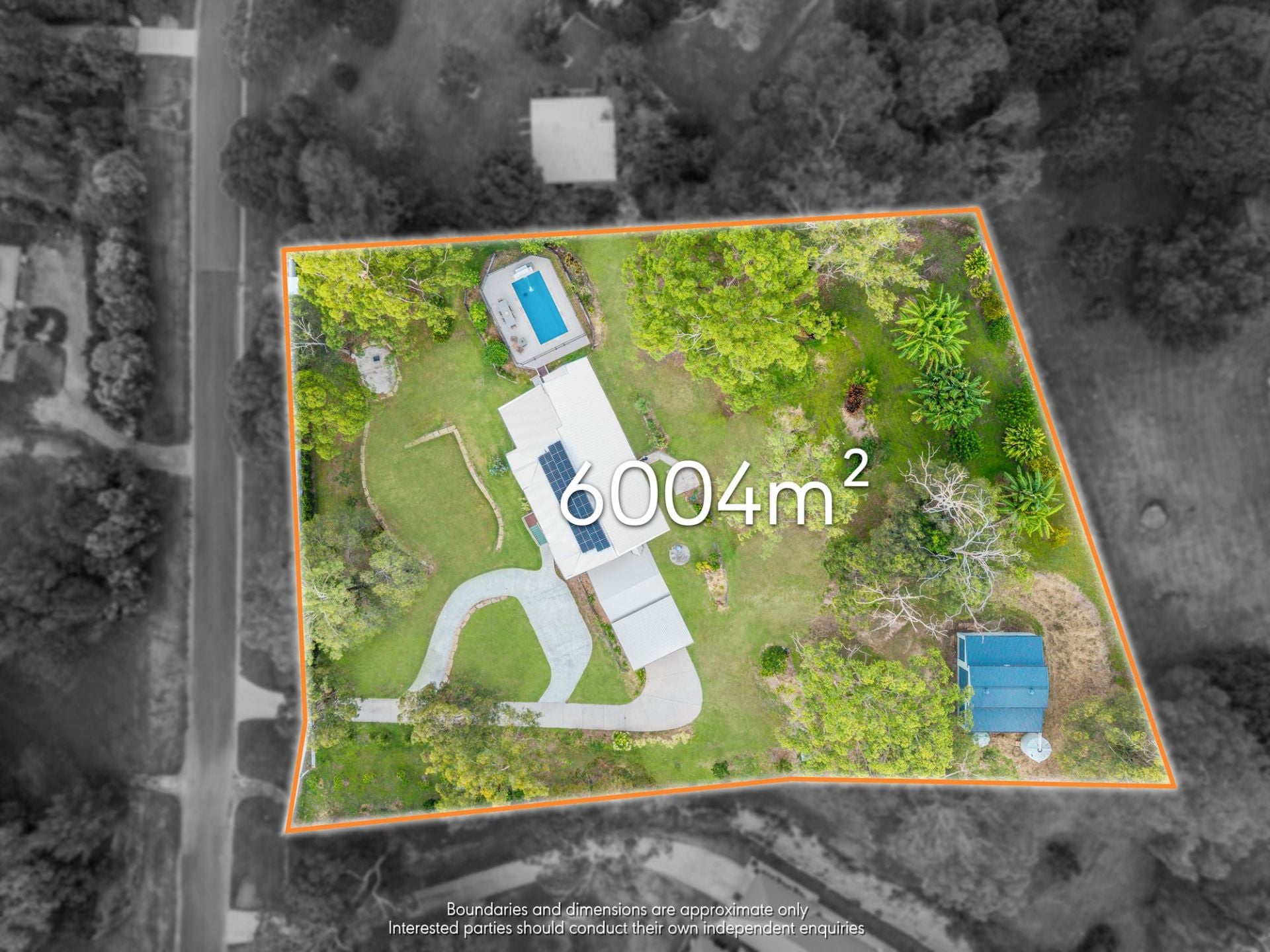 Outdoors, the property is well equipped with a 3-bay shed, 2-car garage, additional 2-bay carport, concrete driveway and electric solar gate. A 6.5kW solar system supports energy efficiency, while the landscaped grounds include a productive fruit orchard with mulberries, bananas, dragon fruit, turmeric, blood orange, lemon, lime, pomegranate and mandarin.