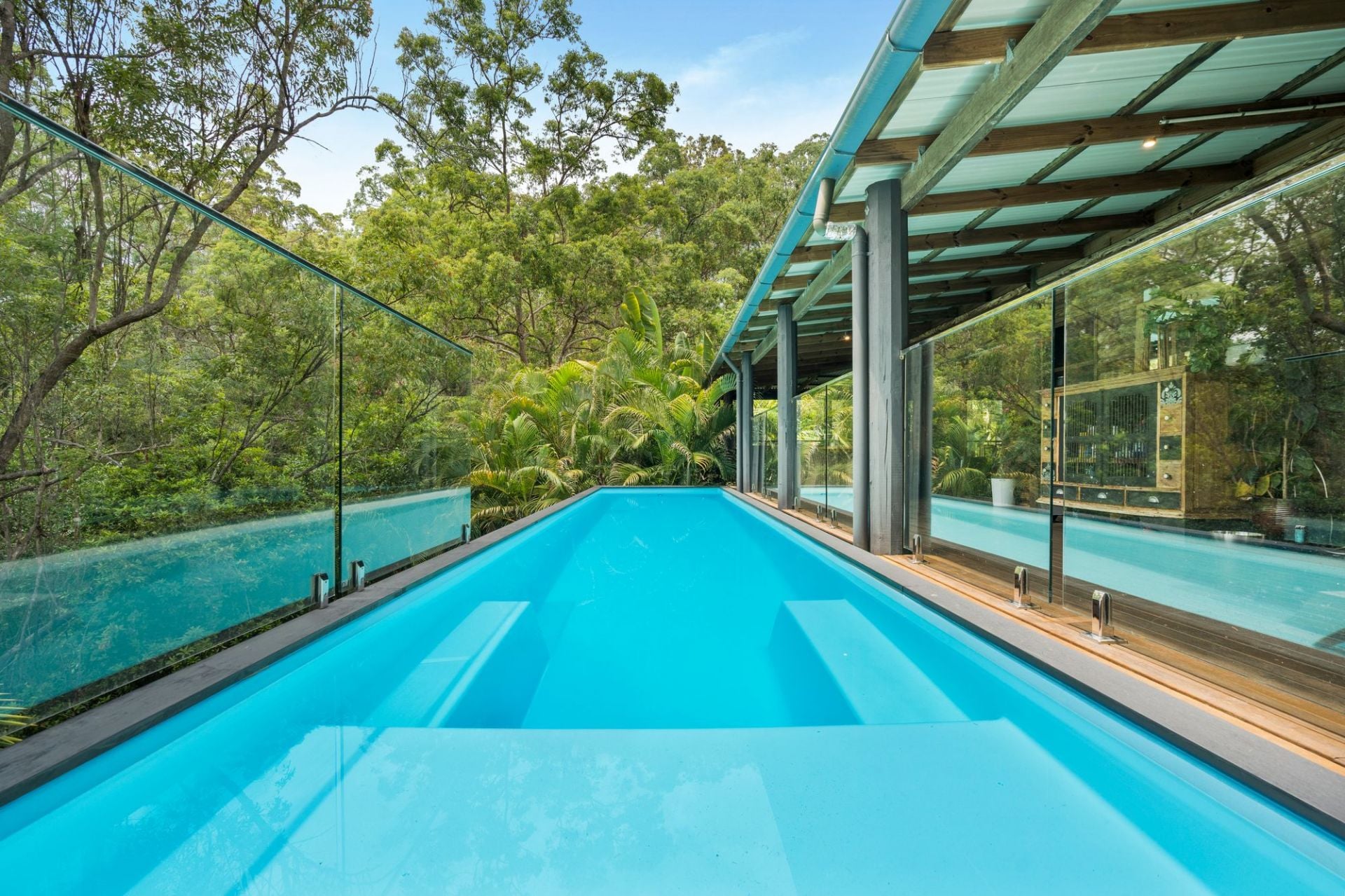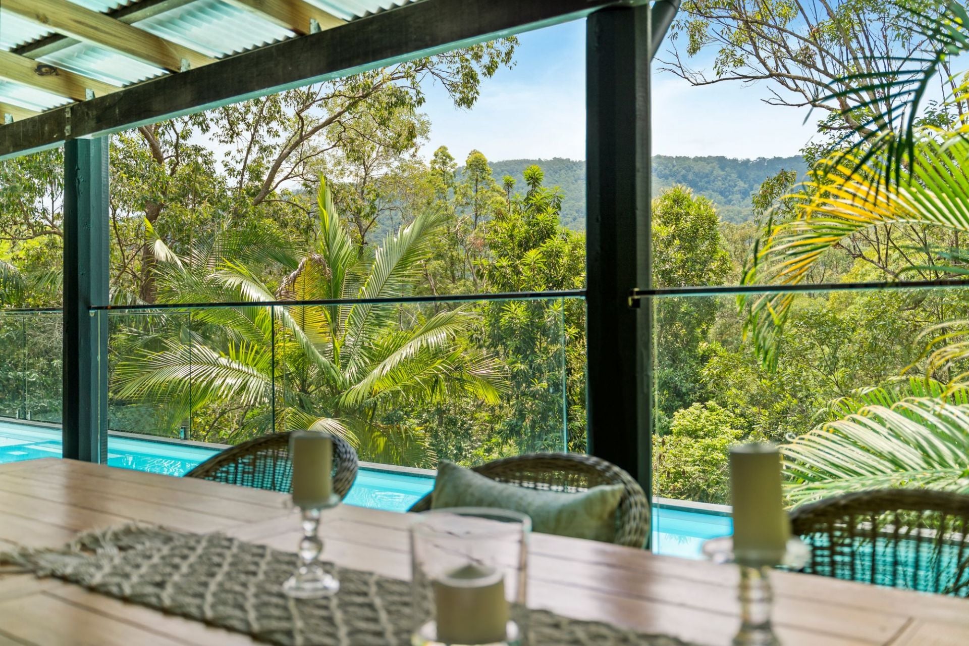 Expansive wraparound verandas capture the morning sun and cool afternoon breezes, the perfect setting for slow coffees, long lunches, or sunset drinks with friends. Step directly from the veranda into the spectacular treetop swimming pool, where you’ll feel as though you’re floating above the forest canopy; a private oasis to let the world drift away.